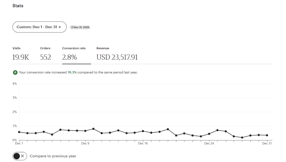 Нижче — результати клієнтів Handmade-Hub UA за грудень 2025 року. Це один із найскладніших місяців року через високу конкуренцію, що робить ці показники особливо показовими.